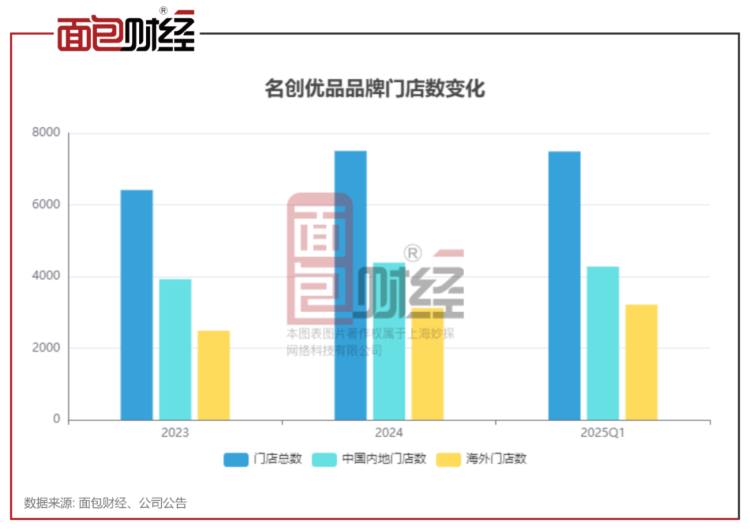 2025年一季度末,公司名创优品门店总数为7488家,较2024年末的7504家出现下降,主要是因为中国内地门店数从2024年末4386家减少至2025年一季度末4275家。
